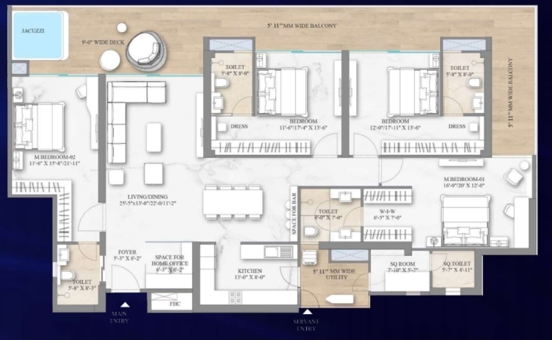 • 4.5 BHK wrap-around balcony 62 feet